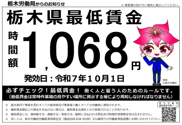 栃木県の最低賃金改定のお知らせ