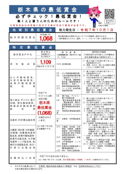 栃木県の最低賃金が令和7年(2025)年10月1日から、改定されました。