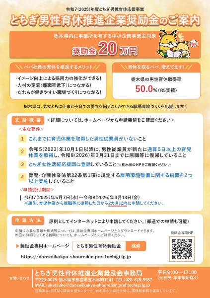 - とちぎ男性育休推進企業奨励金のご案内